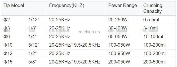 and plant cells, virus cells, and can be used for emulsification, separation, homogenization, extraction, defoaming, cleaning, and accelerating chemical reactions.