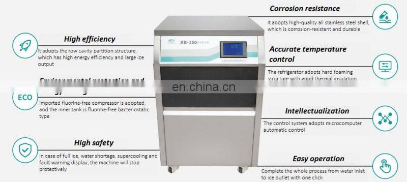 3.Imported motor, computer chip, all process controlled by computer, with full of ice, water shortages, cold protection, Reliable control, low noise, smooth operation, a largequantities of ice , small and practical ice-shape, automatic ice-water separation