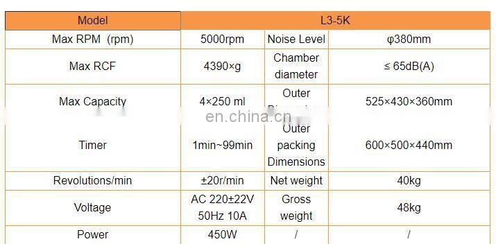 L3-5K Low Speed Clinical Analyzer Medical Separated Red Cells and Prp Urine Centrifuge for PRP