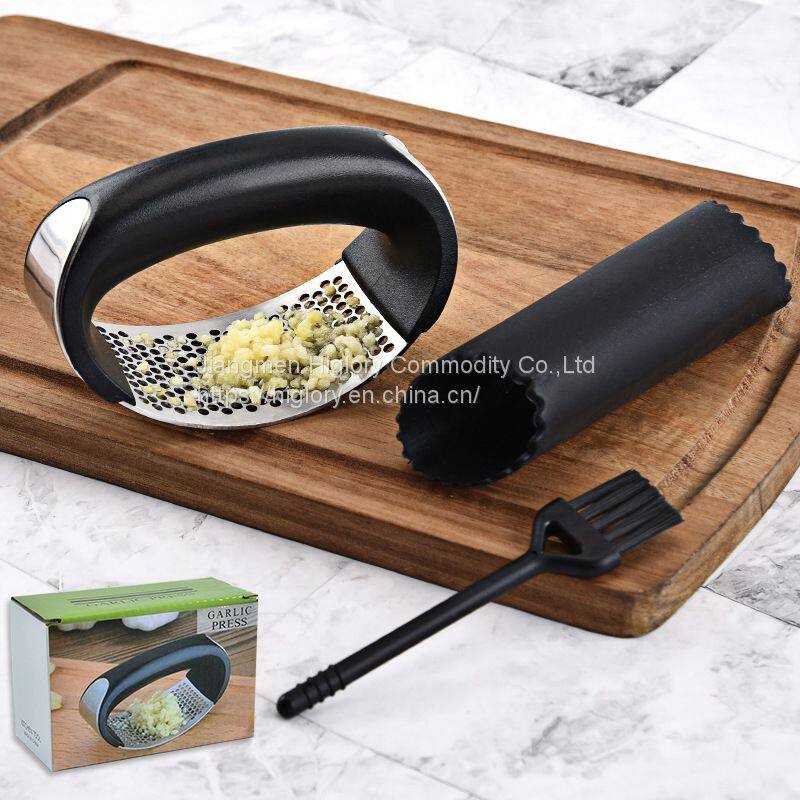 Garlic Press grater Stainless Steel Mincer and Crusher With Silicone Roller Peeler easy to clean