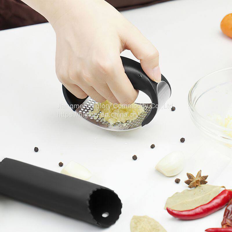 Garlic Press Grater Stainless Steel Mincer and Crusher With Silicone Roller Peeler Easy to Clean