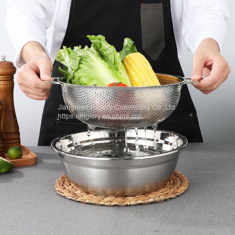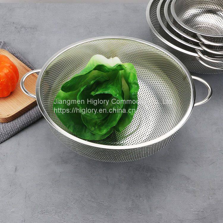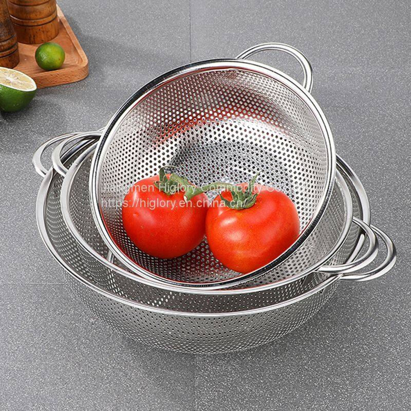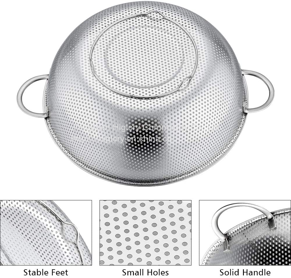 Kitchen Stainless Steel Fruits and Vegetables Washing Strainer Draining Colander Basket Durable Hander & Base Mesh Colanders