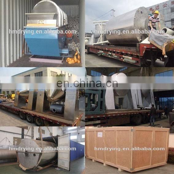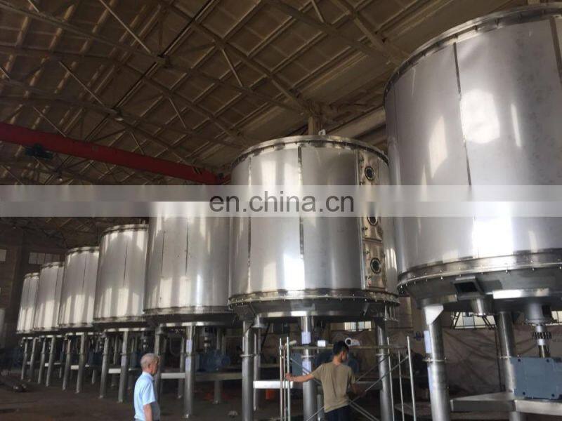 Wet materials are continuously fed into the first layer drying plate on the top of the dryer. They will be turned and stirred by the rakes whose arms make a rotational motion. The materials flow through the surface of the drying plate along the index spiral line. On the small plate, the materials will move to the outer edge and drop down to the large drying plate. On the big one, they will move inward and drop to the small plate on the next layer from the central hole. Both small and large drying plates are arranged alternately so that the materials can get through the whole continuous plate dryer. The heating media will be led into the hollow drying plate. The heating media includes saturated steam, hot water, and conduction oil, and it will enter from one end and derive from the other end. The dried materials will drop from the last layer of the drying plate to the bottom layer of the shell. Finally, they will be transferred to the discharge port by the rakes. The moisture escapes from materials and will be expelled from the wet discharge port on the top cover. The moisture of vacuum type drying machine will be drawn out by the vacuum pump. Drying pasty and heat sensitive materials, this continuous plate dryer can recover the solvent and conduct pyrolysis and reaction operation.