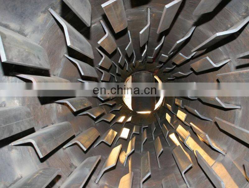 one end from the screw material adding device continuously, and is stirred by the bafflers that are uniformly distributed in the barrel.The material is uniformly distributed and dispersed in the dryer and fully contacts the hot air of counter flow. When the material passing through the cylinder inside surface, it will contact with the hot air circling inside and being dried .Most of the dried product will be discharged from the other end of the dryer. Small part of the fine granule goes into the cyclone separator with the exhaust air. The powder will be separated and collected, and the exhausted air will be ejected to the atmosphere. During the drying course, the material will slowly move to the lower end from the higher part recur to the slowness rotating of the cylinder