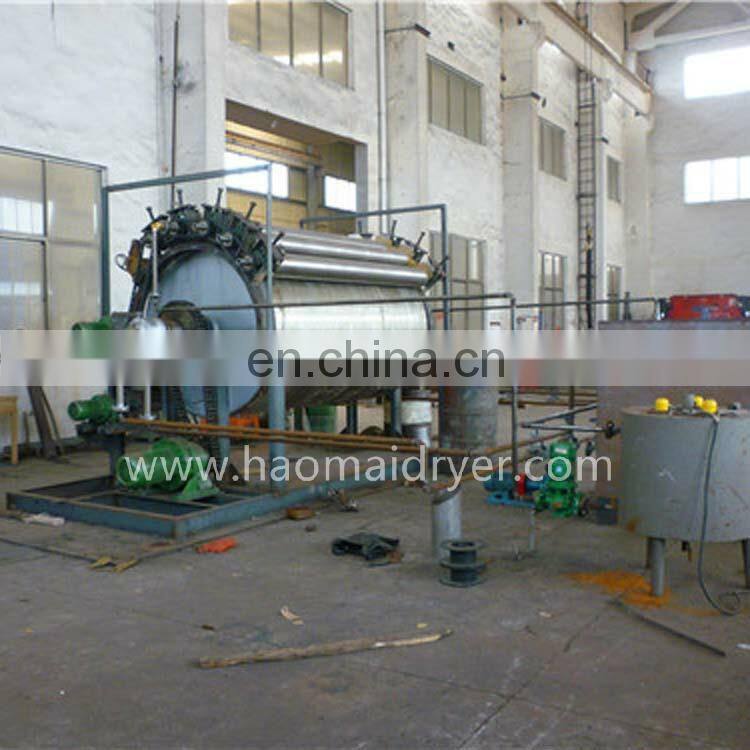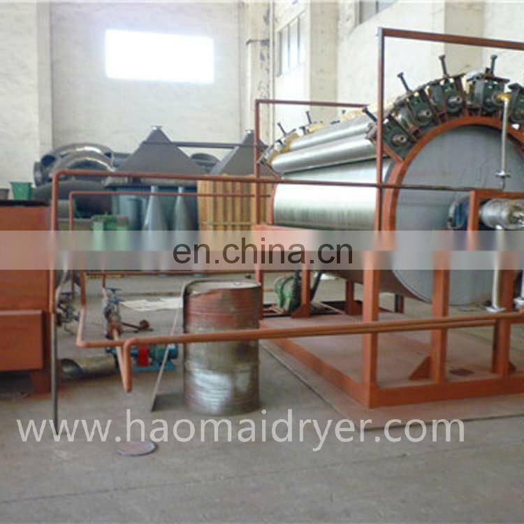2. Flexible operation elasticity and wide application: Various drying factors of the dryer can be adjusted, such as concentration of the liquid, thickness of material film, temperature of heating medium, rotating speed of the drum, and etc.