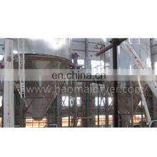 After fresh air is filtered and heated, it enters into the air distributor which on the top of the drier. The hot air in spiral form equably enters into the drying room. When liquid raw material is passed through the high-speed centrifugal sprayer on the top of the tower, it will be rotated and sprayed into the extreme slim mist liquid beads. Raw material can be dried to the final products instantly while it contact with the heated air. Finished products are discharged continuously from bottom of the drying tower and cyclones segregator. Wasted air is discharged from the blower.