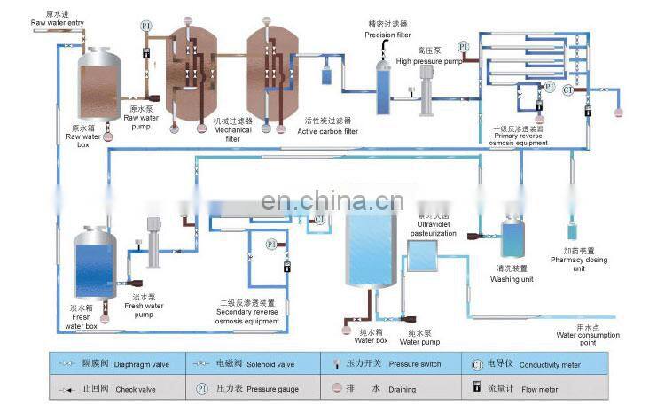 1. RO Pure water treatment plant is for producing drinking water, pharmaceutical factory, foods factory, beverage factory, fruit& vegetable factory etc.