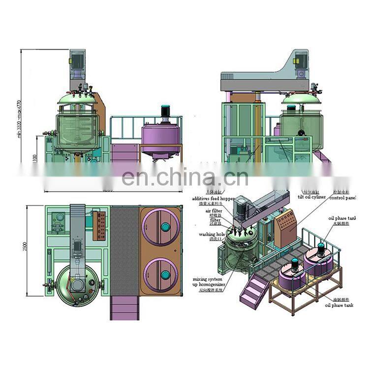 5.Homogenizing vacuum emulsifier mixer can choose frequency conversion timing homogenizer and highest rotate speed is 4500 r/min
