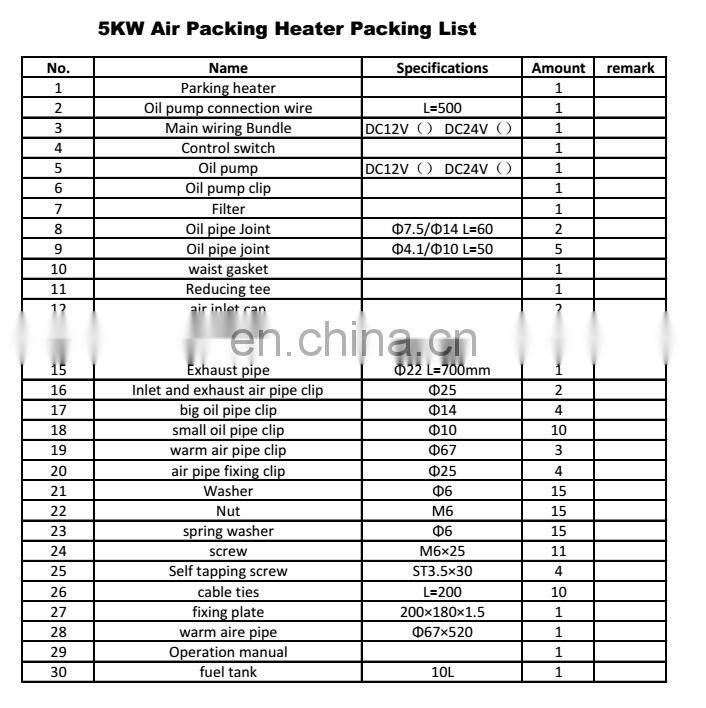 The heater is applied for the freight vehicles, the medium coaches vehicles (Iveco, Ford transit, etc.) the fruits and vegetables transport vehicles, the vehicles of field work, the storage battery cars and almost every kinds of ships