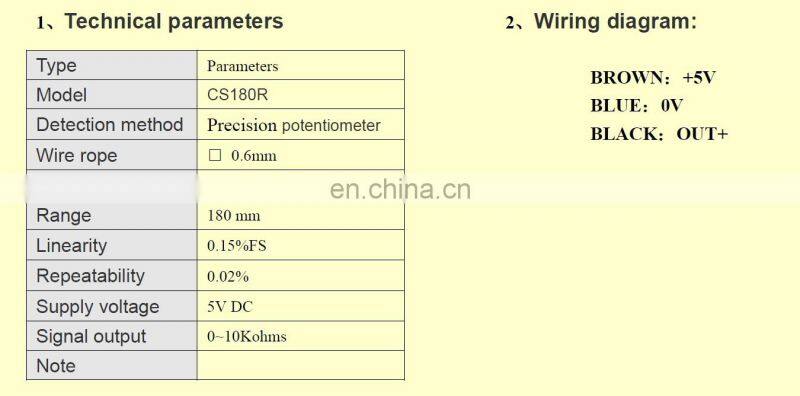 Mini String Encoder 150mm 180mm 250mm 300mm 500mm Range 0-5kohm 0-10kohm Output Position Sensor