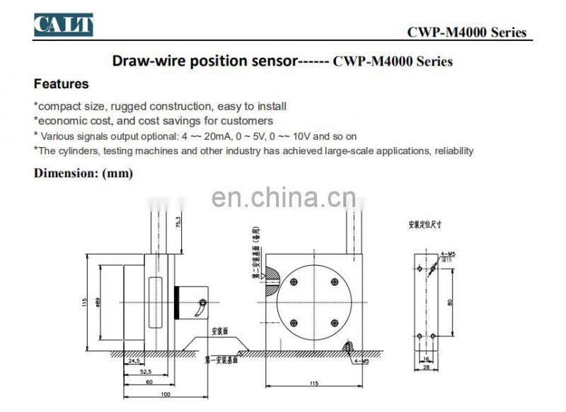 CALT CWP-M5000A 5000mm draw wire displacement sensor 4-20mA