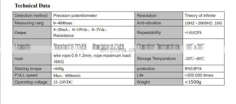 Measuring Range 4000mm Potentiometer Sensor Draw-wire Position Sensor
