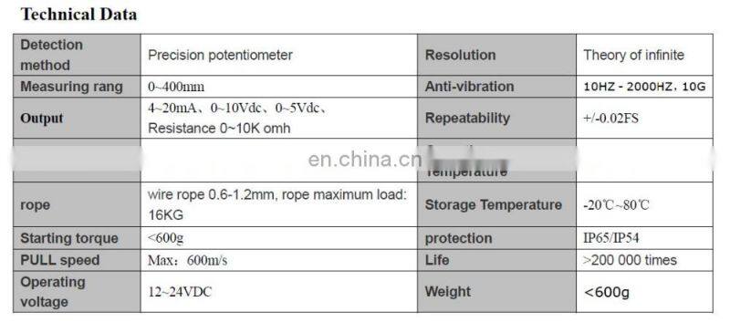 CWP-S400A Potentiometer Draw Wire Displacement Sensor 4~20mA Output for Length Measuring