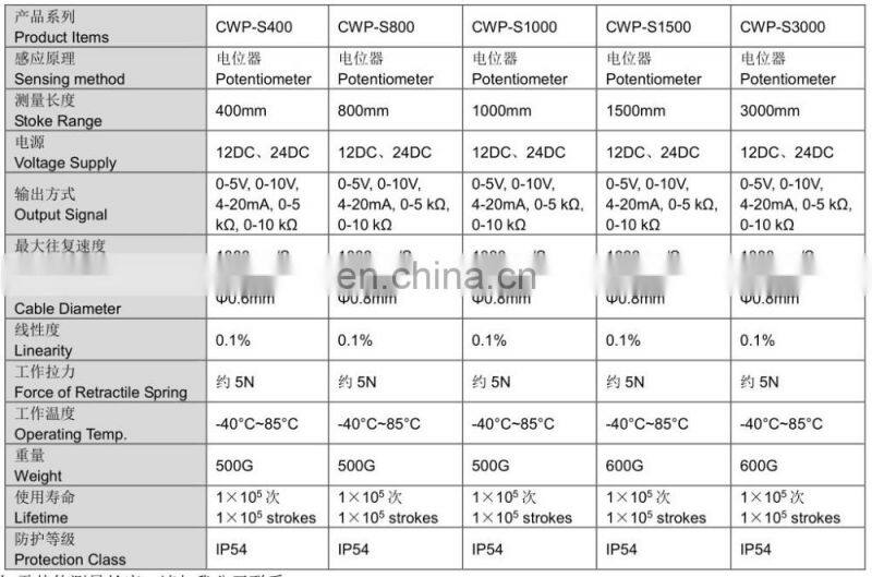 CWP-S series High Quality and Low Cost linear resistive position sensors