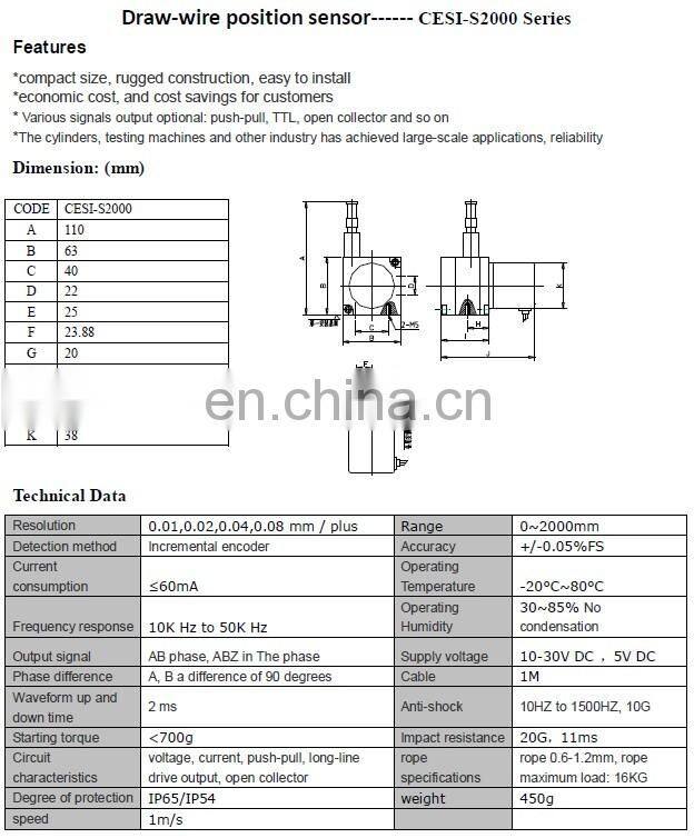 2000mm Wire Digital Sensor Rope Incremental Encoder Position Sensor