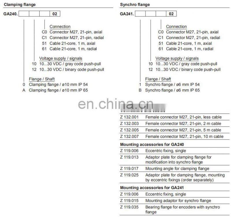 GA241 with synchro flange 6 mm shaft optical sensing encoder 13 bit supply voltage 10~30 VDC absolute encoder parallel