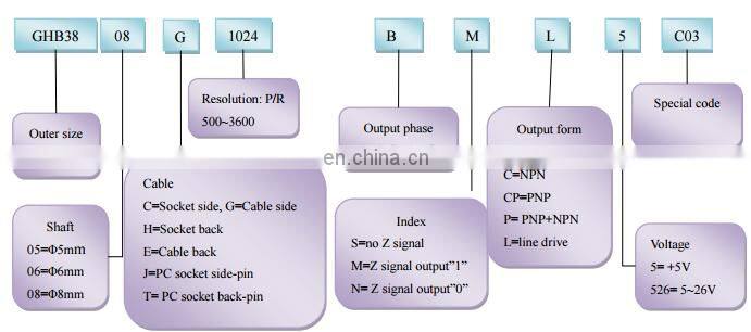 GHB38-05G1024BML5 1024pulse 5mm Blind Hollow Shaft 5V Line Driver Incremental Rotary Encoder for Embroidery Machine