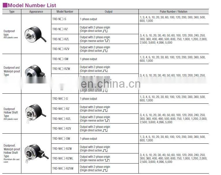 Incremental Rotary Encoder TRD-N1000-RZ 100 200 360 600 1000 1024 2000 2500 ppr 50mm Outer RZ Encoder