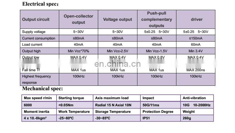 Widely used in automatic control, automatic measurement, as the angle and speed sensors. ASIC devices internal, good reliability, long life, anti-jamming performance. Stainless steel shaft has a higher stability and protection.Metal shell is more solid and anti-impact. Bearing load heavy, anti-oil and water.