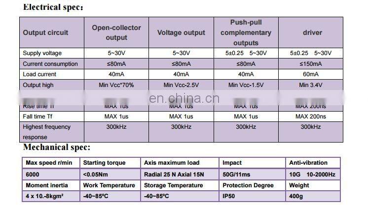 Widely used in automatic control, automatic measurement, as the angle and speed sensors. ASIC devices internal, good reliability, long life, anti-jamming performance. Stainless steel shaft has a higher stability and protection.Metal shell is more solid and anti-impact. Bearing load heavy, anti-oil and water.
