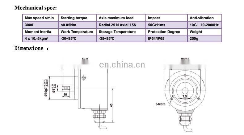 Widely used in automatic control, automatic measurement, as the angle and speed sensors. ASIC devices internal, good reliability, long life, anti-jamming performance. Stainless steel shaft has a higher stability and protection.Metal shell is more solid and anti-impact. Bearing load heavy, anti-oil and water.