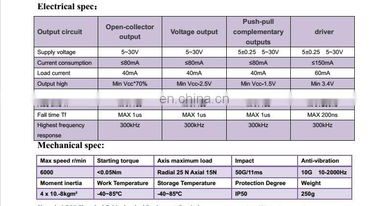 Widely used in automatic control, automatic measurement, as the angle and speed sensors. ASIC devices internal, good reliability, long life, anti-jamming performance. Stainless steel shaft has a higher stability and protection.Metal shell is more solid and anti-impact. Bearing load heavy, anti-oil and water.