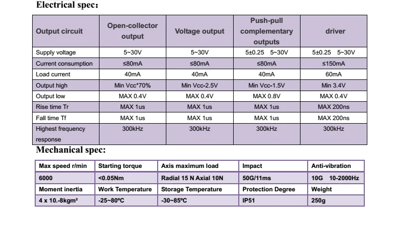 Widely used in automatic control, automatic measurement, as the angle and speed sensors. ASIC devices internal, good reliability, long life, anti-jamming performance. Stainless steel shaft has a higher stability and protection.Metal shell is more solid and anti-impact. Bearing load heavy, anti-oil and water.