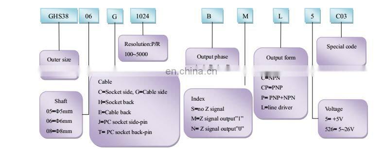 Home > Products > Incremental Encoder > 1024ppr 6mm Shaft GHS38-06G1024BML526 Incremental Rotary Encoder for Lifting Machine