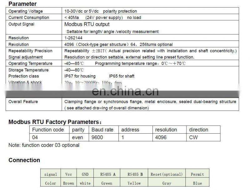Economical Programable Absolute Encoder Multi-turn RS485 Modbus Output 14 Bit IP67 Waterproof Absolute Rotary Encoder