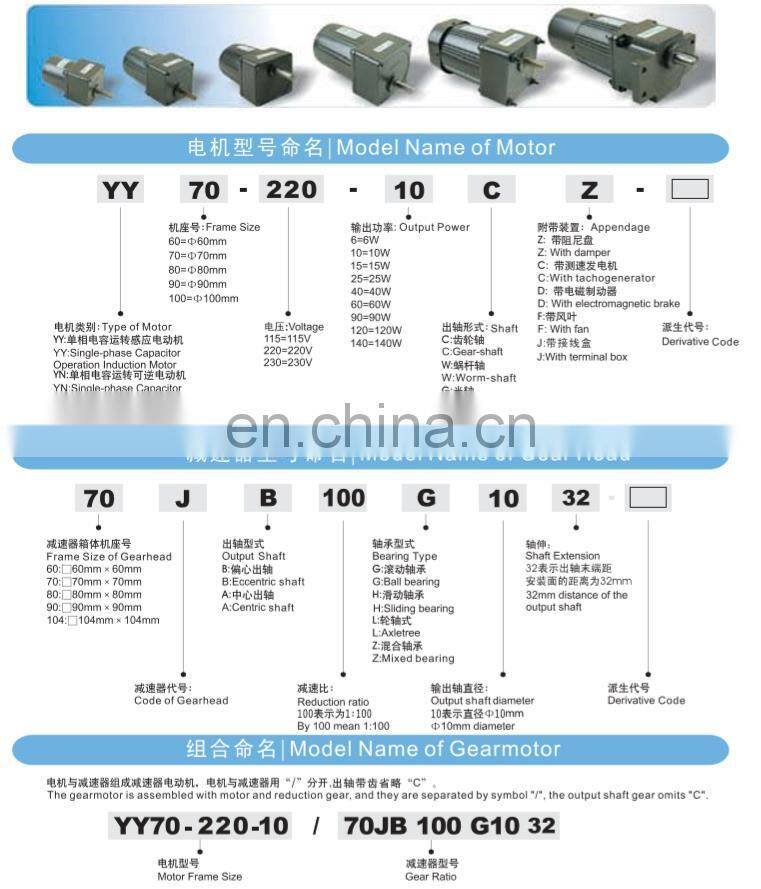 YN70-15-8 15W Fireplace Motor 230V 70JB360G10 Reducer AC gear motor