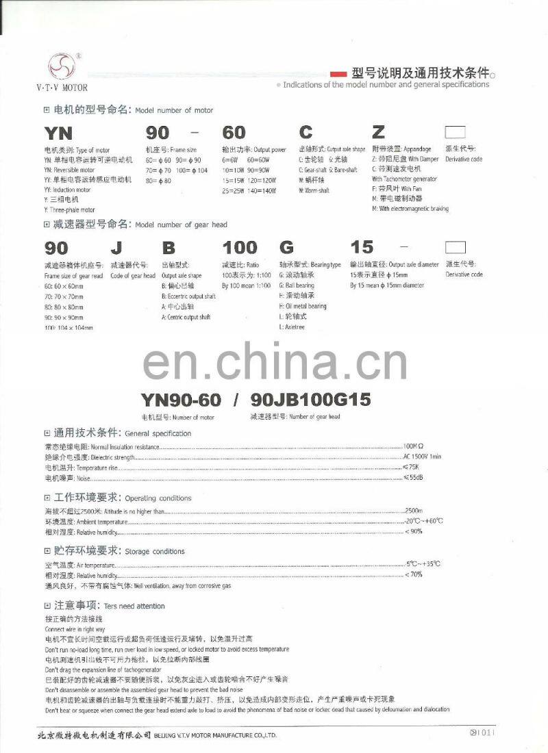 YN90 Series VTV 220Vac 90*90mm outer gear motor