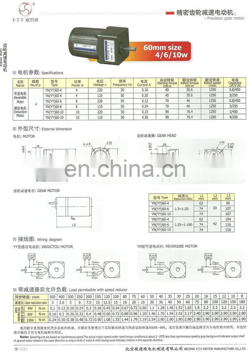 YN70 Series VTV 220Vac 70*70mm outer gear motor