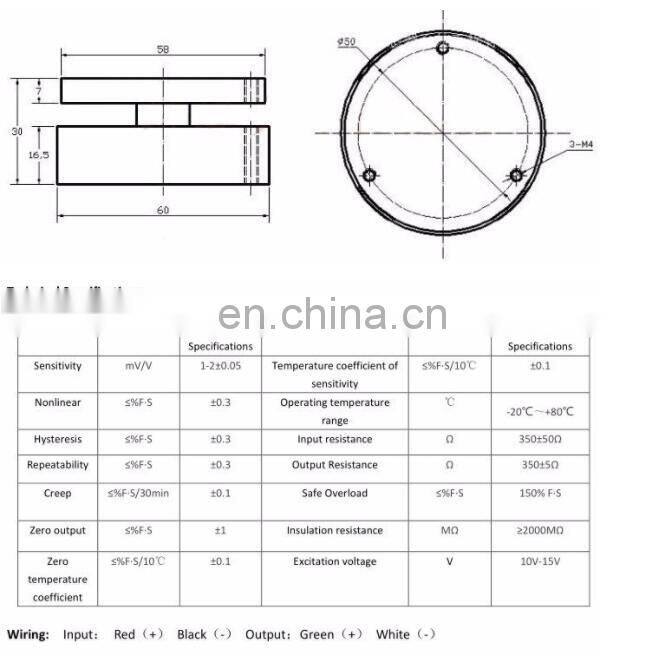 Note: The capacity of the 25mm flat membrane box load cell ranges 20kg to 2t, we also have outer dia of 58mm, the outer dia can be customized to your demand.