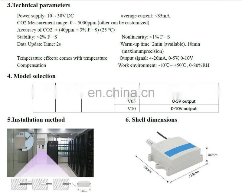 High precision CO2 sensor 0-5000ppm carbon dioxide content sensor 4-20mA 0-5v 0-10v environment sensor
