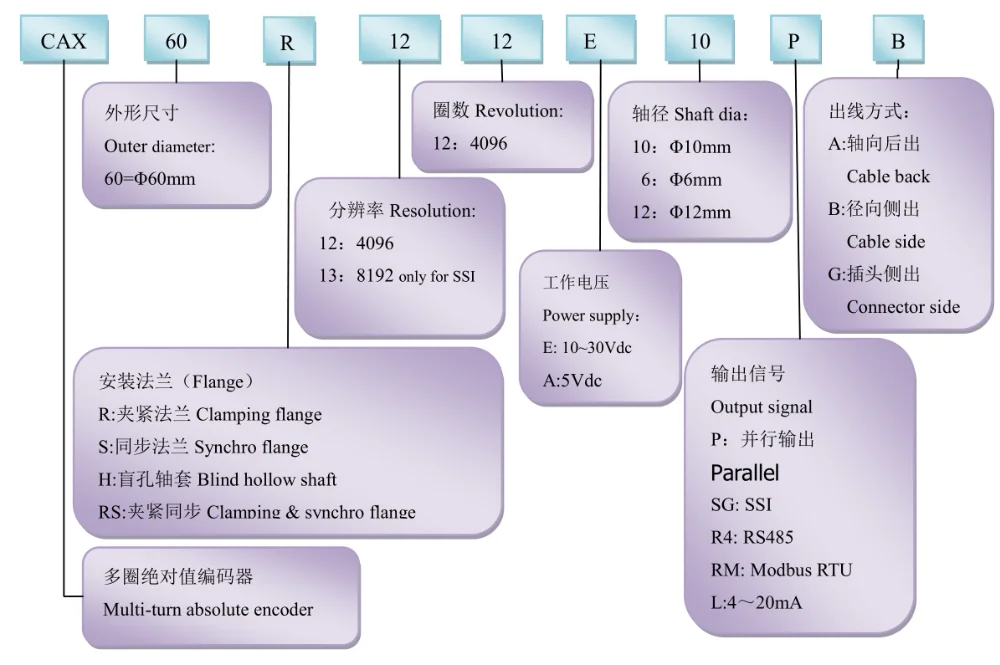 CAX60R1212E10SGB SSI multiturn absolute optical encoder 10mm shaft digital encoderr