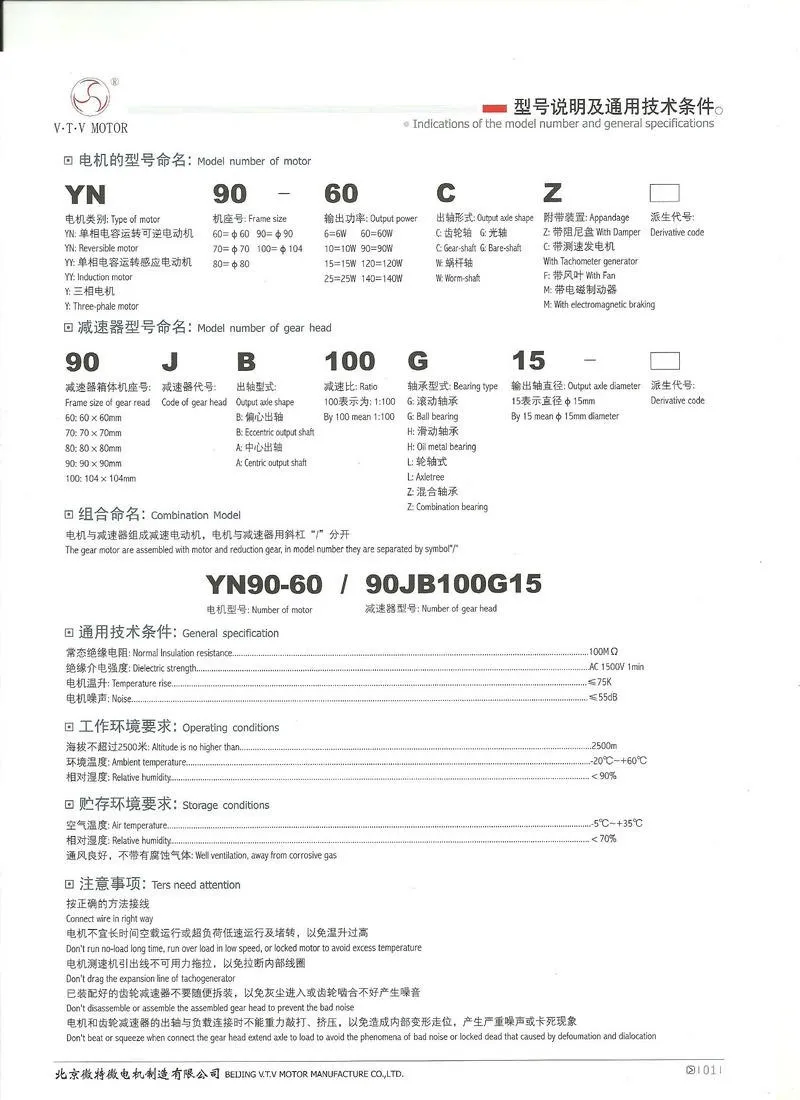 VTV YN70-20 70JB40G10 gear head motor reduction gearbox for electric motor