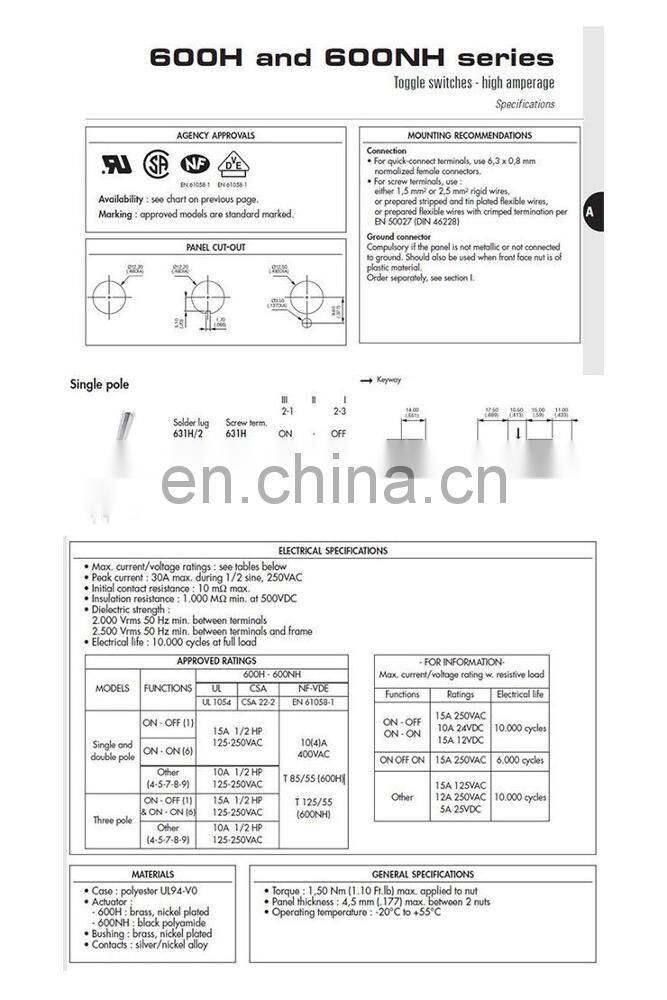 APEM 631H 631H/2 2Pin 12mm ON/OFF Maintained Toggle Switch SPST