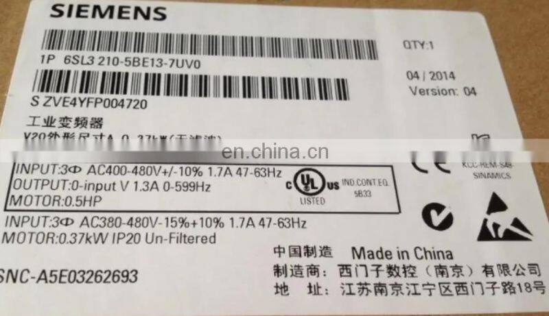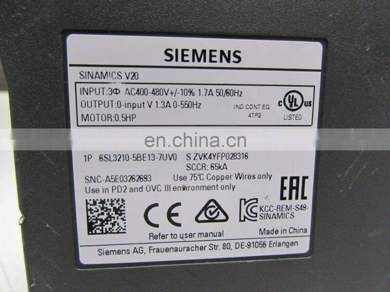 item | 480V 5KW Siemens Sinamics V20 1P power inverter 6SL3210 series 6SL3210-5BE13-7UV0 inverter generator |