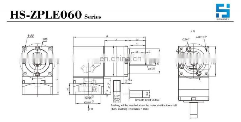 HS-ZPLF060 Right Angle High Precise Planetary Gearbox Working Well With Any Brand Japan Brand Like Shimpo