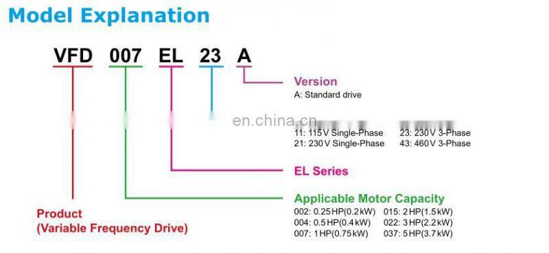 Delta VFD Inverter Drive VFD015EL43A AC Drives VFD-EL Series VFD015EL43A