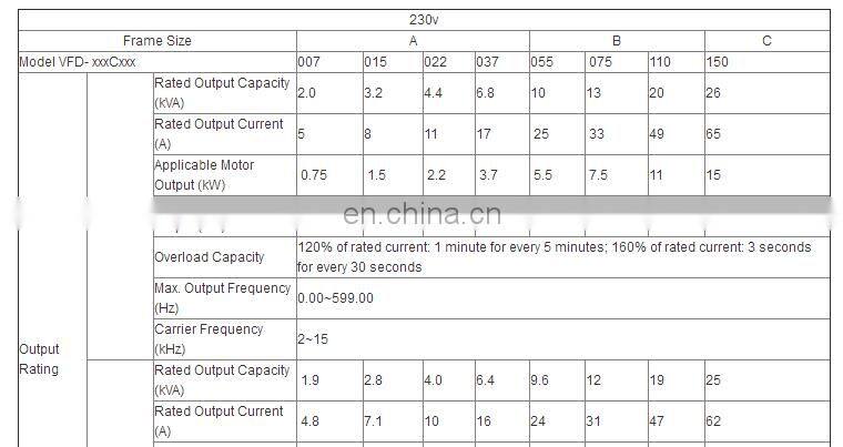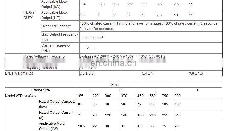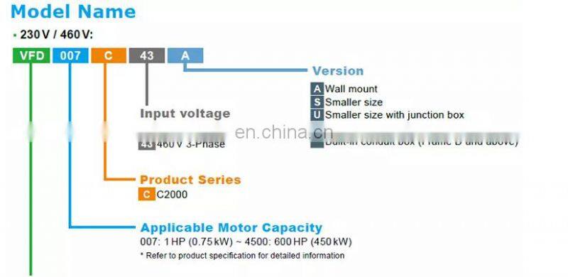Home > Products > Delta > 100% VFD Frequency Converter 50hz to 60hz 30kw 40hp 380v Vfd Drive Delta Inverter C2000 Series VFD300C43A