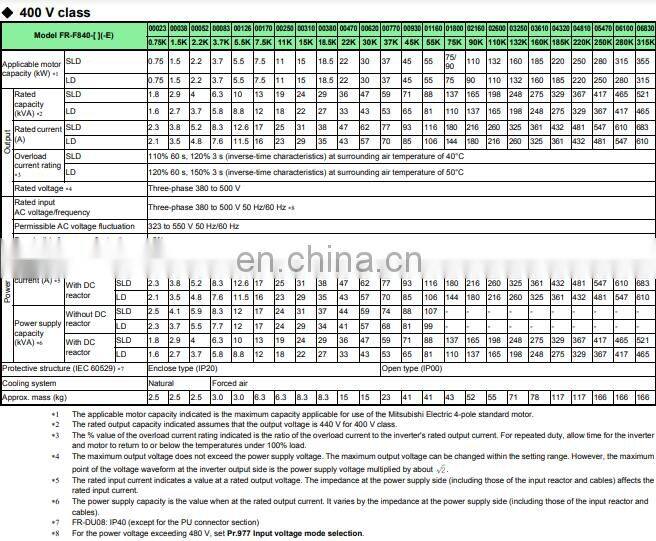 Low Price High Quality Mitsubishi 55KW FR-A820 Series Inverter FR-A820-03160-2-60