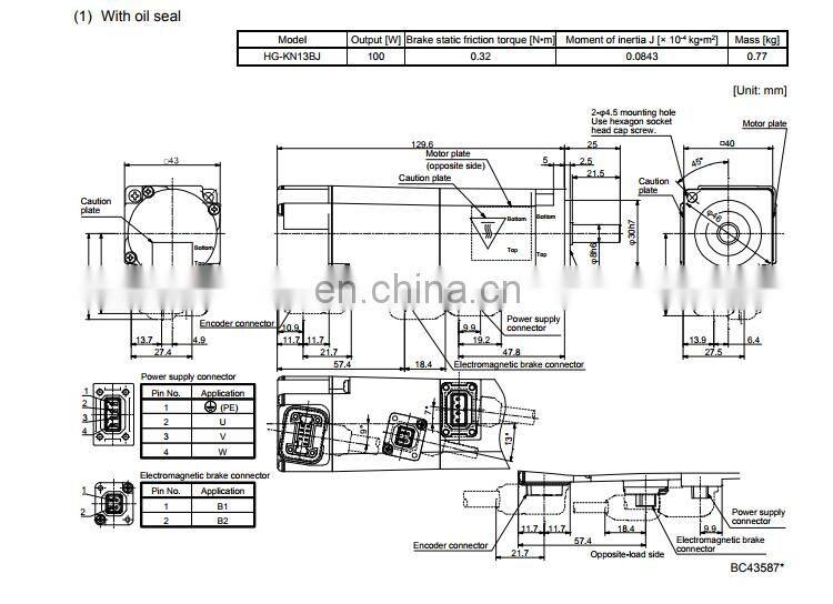 100w Mitsubishi Servo Motor HG-KN13JD-S100