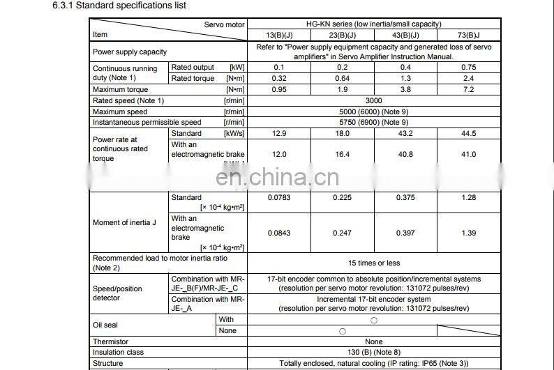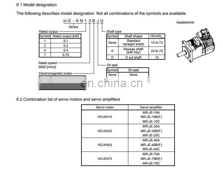 Home > Products > Mitsubishi > 100w Mitsubishi Servo Motor HG-KN13JD-S100