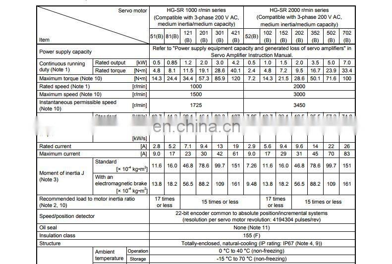 | HG-SR102(B)J | 1000W 2000r/min |