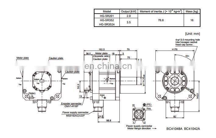 Mitsubishi J4 Series 3500W Servo Motor HG-SR352J