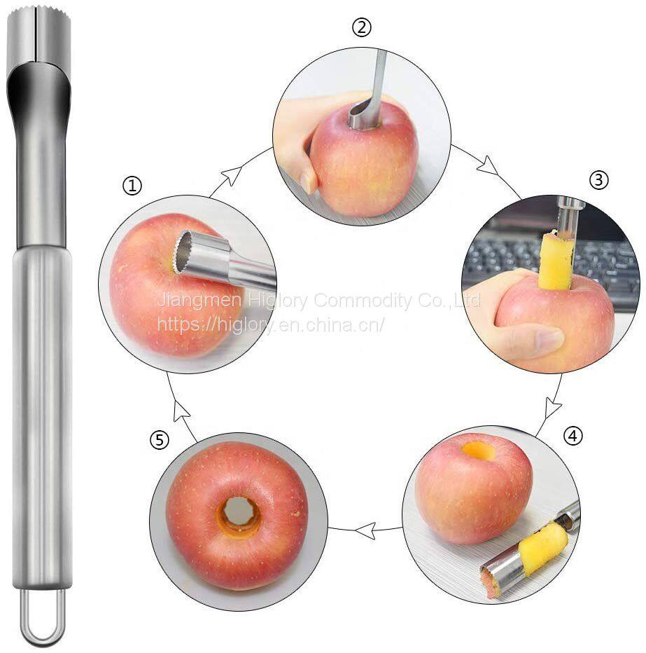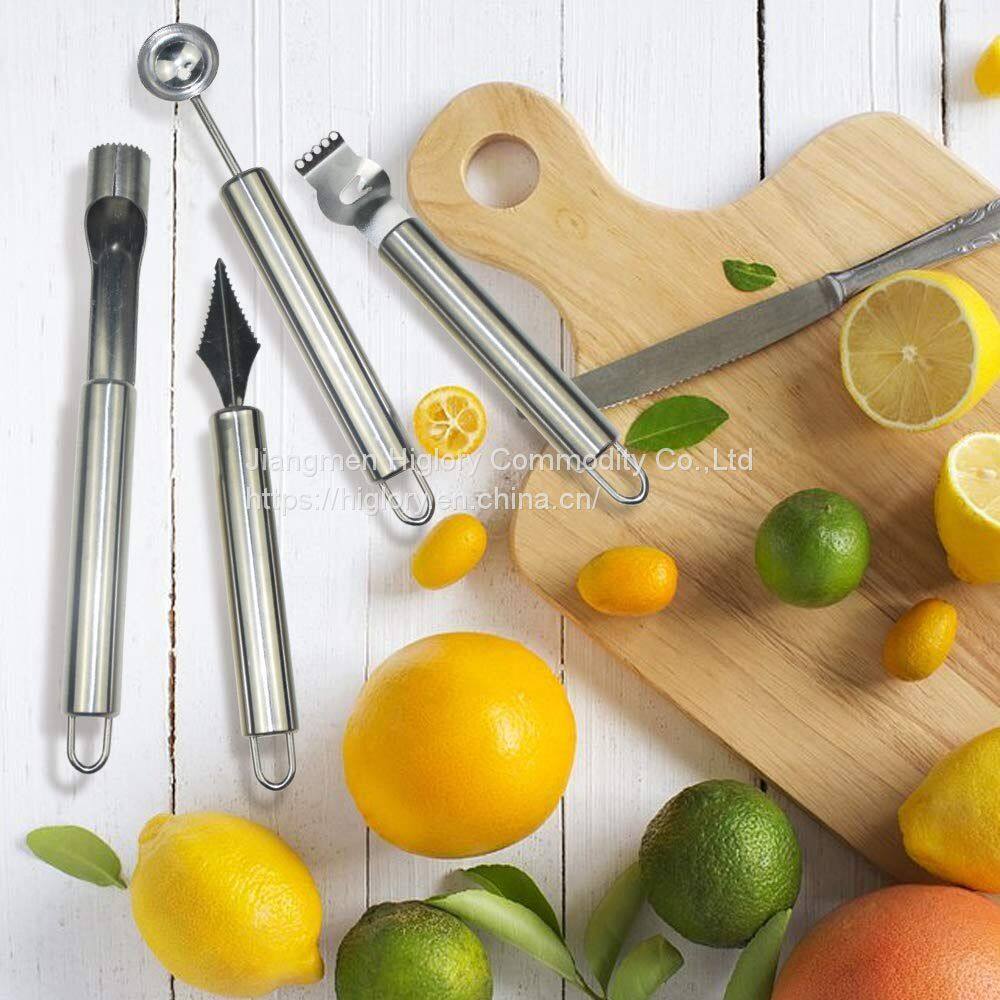 | Size | Apple Corer: size:8.1*0.8inch Fruit Carving Knife: size:7.3*0.8inch Watermelon Baller: size:7.3*1.1 inch Lemon Zester/Peeler: size:6.4*0.8inch |