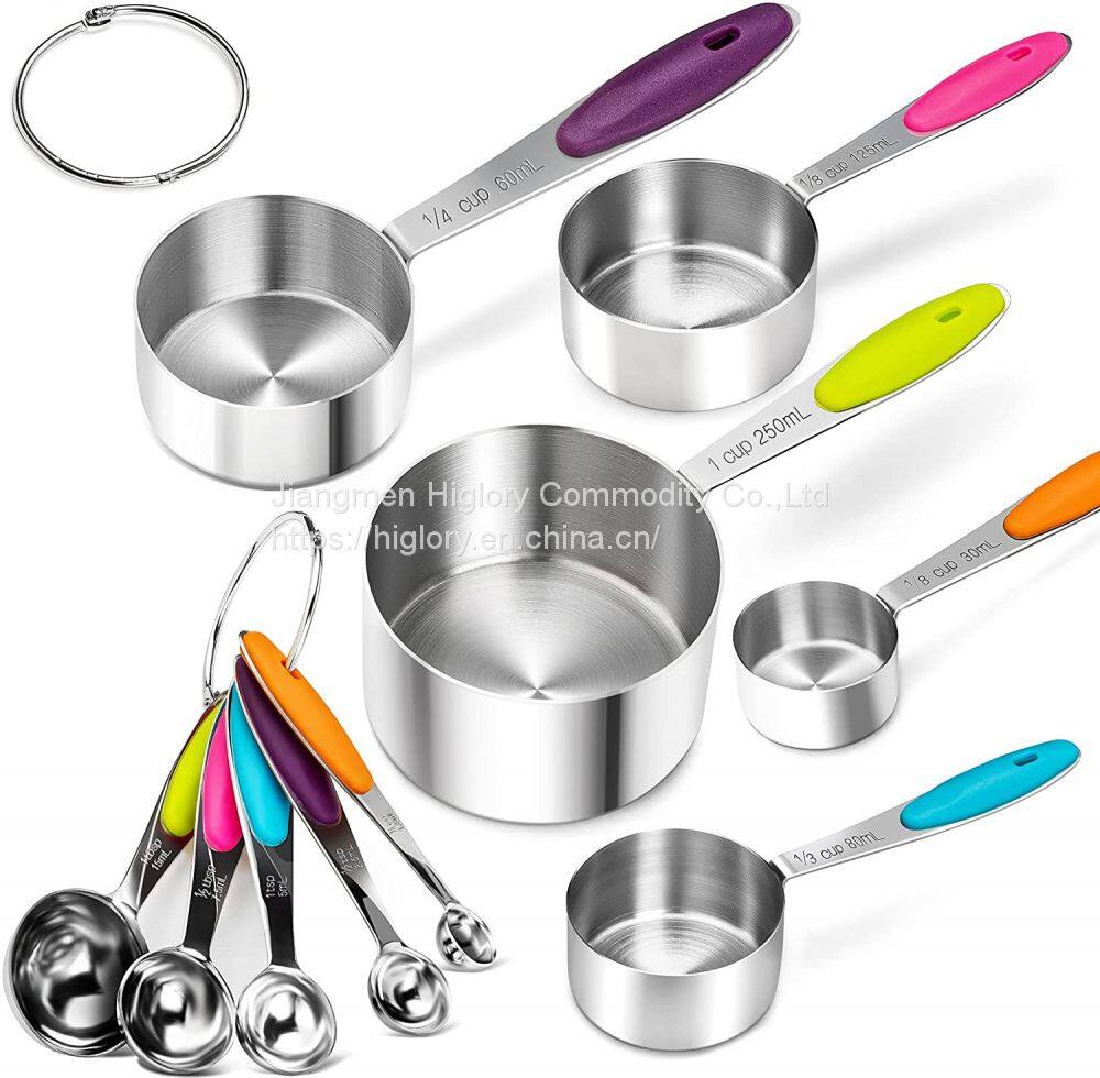 Eco Friendly 10pcs Stainless Steel Silicone Handle Measuring Cup and Measuring Spoon Baking Tools for Tea Coffee Kitchen