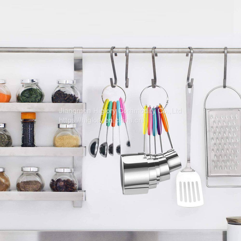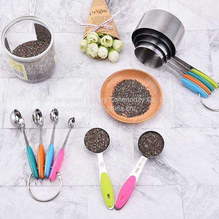 Eco friendly 10pcs stainless steel silicone handle measuring cup and measuring spoon Baking tools for tea coffee kitchen
