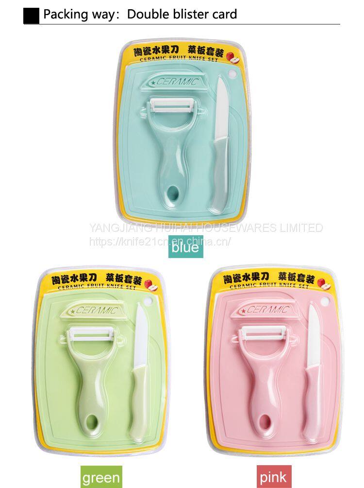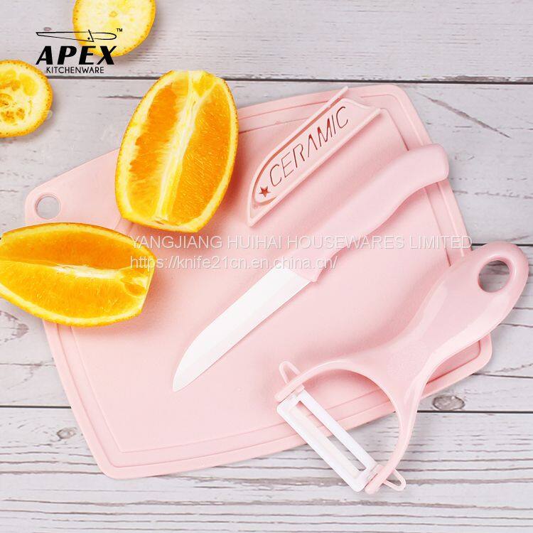 | NEW design3 Piece Ceramic fruit Vegetable Knife with Peeler Cutting Board Set pink blue green availble |